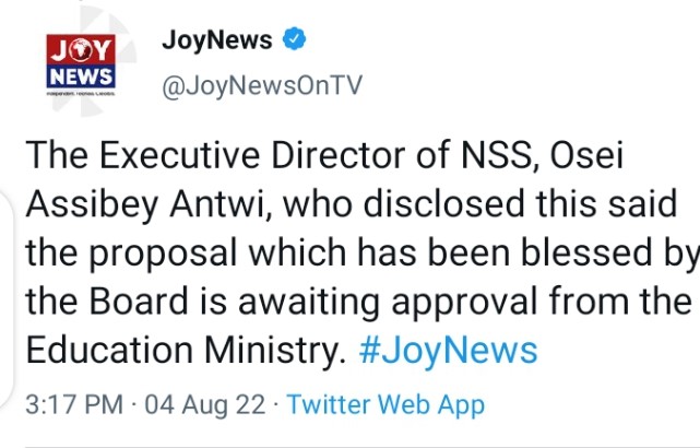 The National Service Secretariat has initiated the necessary steps to increase the allowance for its personnel. This decision was revealed by the Executive Director, Osei Assibey Antwi, on Joy news.